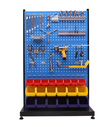 配置:配2塊百頁掛板,4塊方孔掛板,底部可配兩定向兩萬向帶剎車輪。